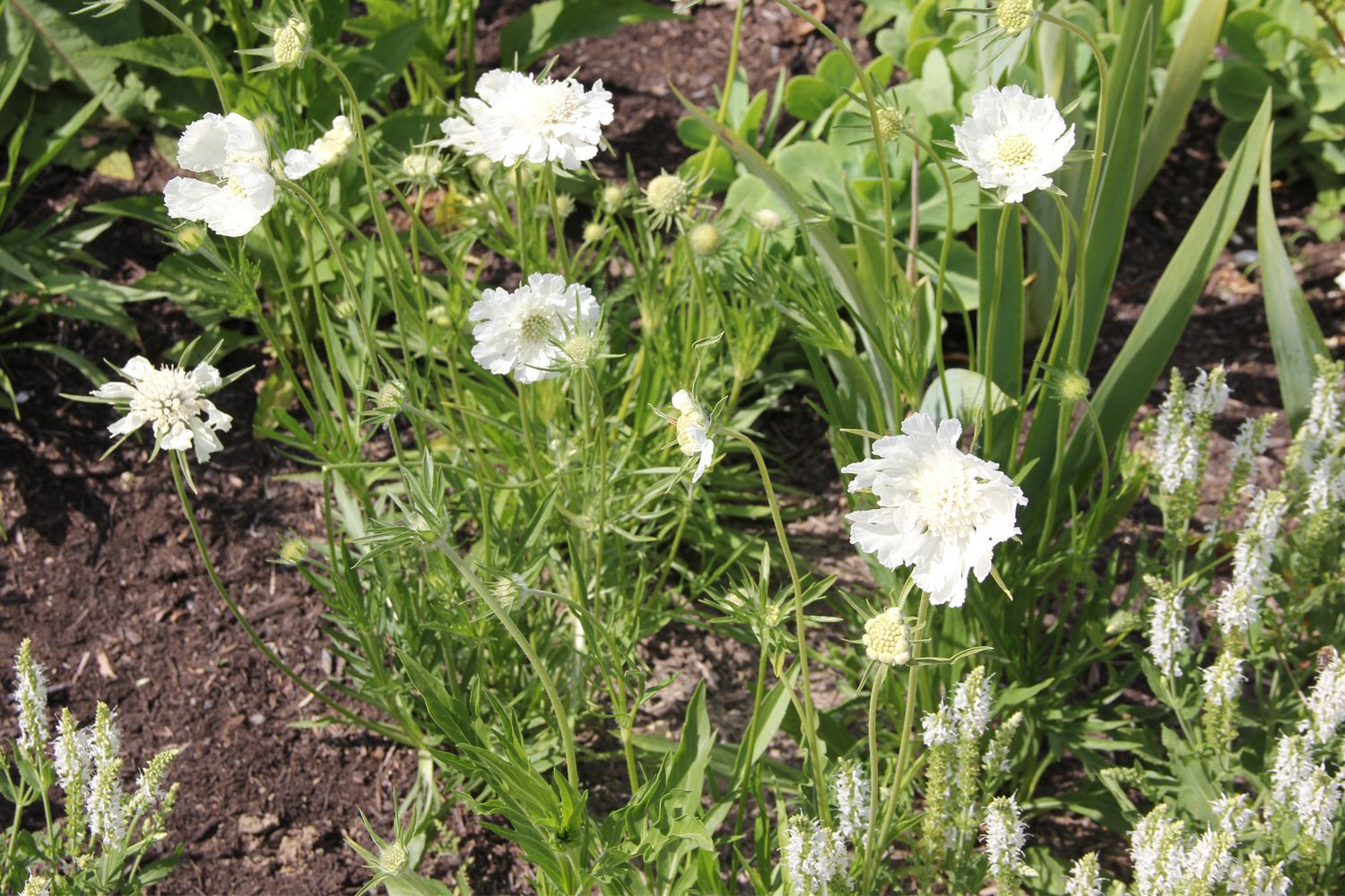 Diese große Garten-Skabiose bringt immer wieder neue Blüten hervor, in milden Jahren bis in den November. Ideale Nachbarn sind hohe Gräser, Achillea, Coreopsis oder Liatris.