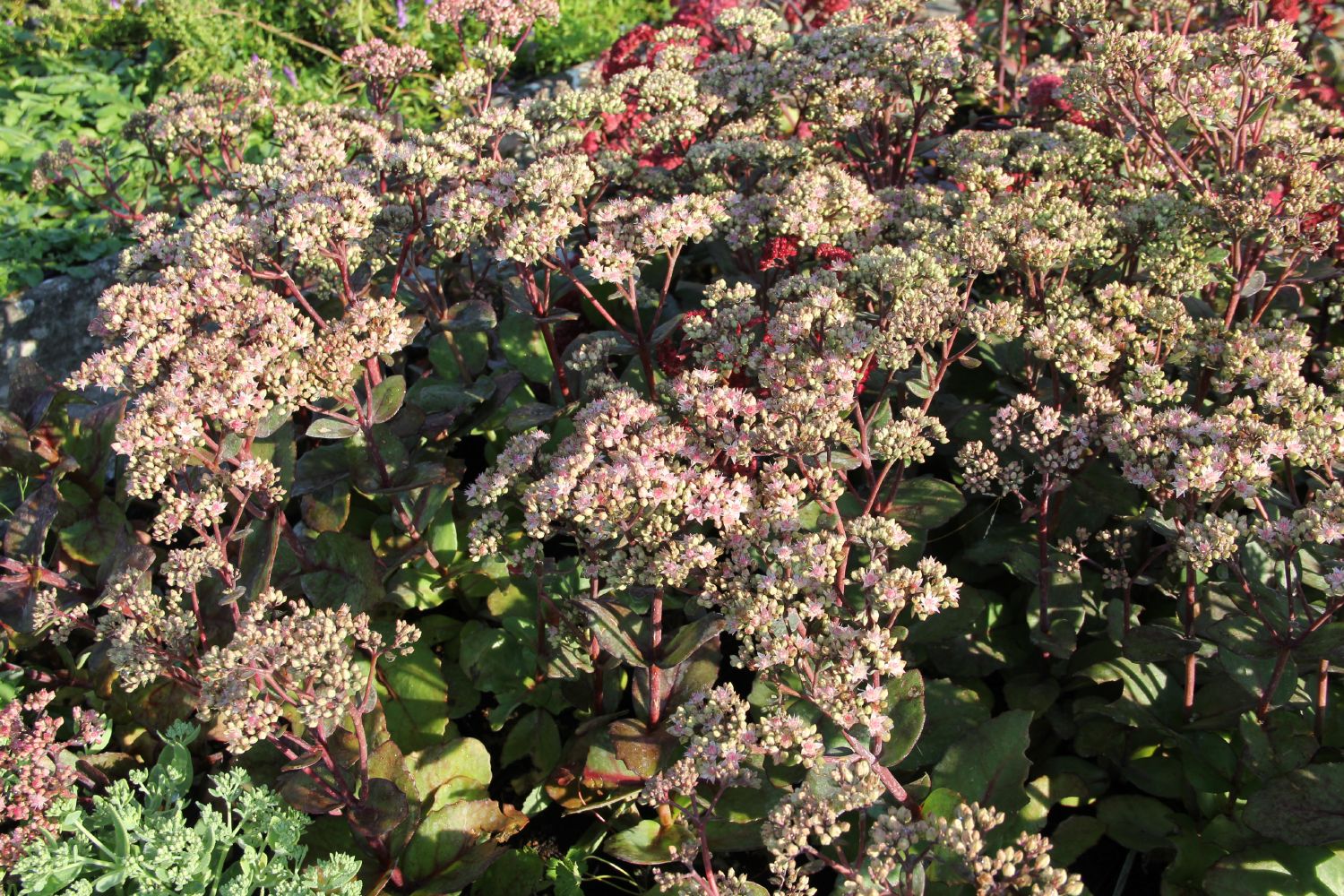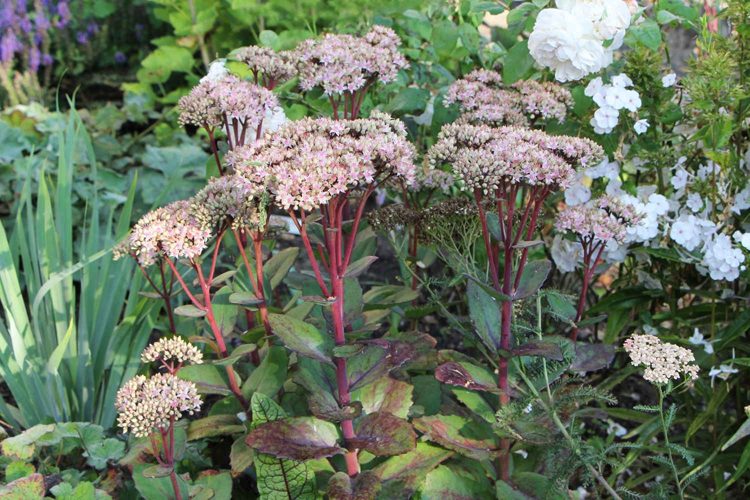 Sedum 'Matrona' ist eine üppige Fetthenne deren riesige altrosafarbenen Blütendolden im Spätsommer ein echter Hingucker sind. Eine ungewöhnliche Erscheinung nicht zuletzt auch wegen ihrem interessanten Laub, das sich zum Sommer hin purpurfarben färbt und die Blattadern setzen sich zusätzlich in einem dunkleren Purpur ab. Wie fast alle Fetthennen liebt sie einen sonnigen bis absonnigen Standort mit durchlässigem, nährstoffarmen Boden. Am schönsten kommt Sedum 'Matrona' in Einzelstellung zur Geltung, aber auch in Tuffs im Steingarten, im Staudenbeet oder in Rabatten kommt sie gut zur Wirkung. Sie dient zahlreichen Insekten als Nektarnahrung.
